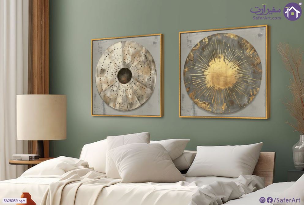 تابلوه مودرن مميز جدااا من قطعتين لمجموعة من النقوش والزخارف دائرية بتصميم تجريدي باللون الذهبي وتدرجات البني لإضافة الفخامة لديكور منزلك, متوفر بمقاسات متعددة يمكنك اختيار او تغيير المقاس عند الطلب ,بتصميم مميز لـ تابلوهات مودرن, تابلوهات مودرن , لوحات فنية مودرن اشكال هندسية و زخارف , التابلوه يغلب عليه الالوان بنى - بيج, فضى – ذهبى , و مصمم بالشكل التالى 2 قطعه, متعدد القطع ( اى عدد ) , ببرواز, برواز ذهبى, مربع , مناسب لديكور حوائط غرفة الاستقبال, غرفة المعيشة, مدخل المنزل, مكاتب – شركات - اعمال , و هو يتميز بالسمات التالية : اشكال هندسية و زخارف, تماثل - سيميترى, دوائر, لوحات فنية , متوفر الان فى مصر و يأتى جاهز للتركيب مع دليل التركيب و اكسسوارات التركيب اللازمه