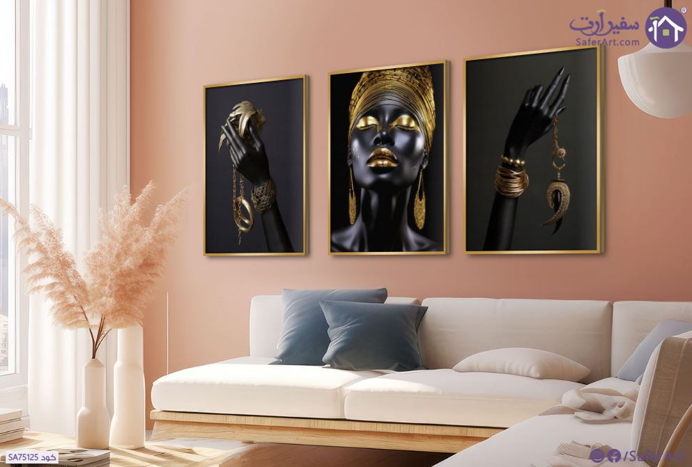 تابلوه مودرن مكون من 3 قطع لبنت و مجموعه من الحلى الذهبية بتصميم بتفاصيل دقيقه بالوان الاسود و الذهبى بمظهر فاخر و مميز, متوفر بمقاسات متعددة يمكنك اختيار او تغيير المقاس عند الطلب ,بتصميم مميز لـ تابلوهات مودرن, تابلوهات مودرن , لوحات فنية مودرن افريقى, بنات, شخصيات و وجوه , التابلوه يغلب عليه الالوان اسود, اللون الواحد, الوان داكنة, فضى – ذهبى , و مصمم بالشكل التالى 3 قطع, متعدد القطع ( اى عدد ) , بالعرض, ببرواز, برواز ذهبى, مستطيل , مناسب لديكور حوائط غرفة المعيشة, غرفة النوم, مدخل المنزل, مكاتب – شركات - اعمال , و هو يتميز بالسمات التالية : الفن الافريقى, صور فوتوغرافية, مودرن , متوفر الان فى مصر و يأتى جاهز للتركيب مع دليل التركيب و اكسسوارات التركيب اللازمه