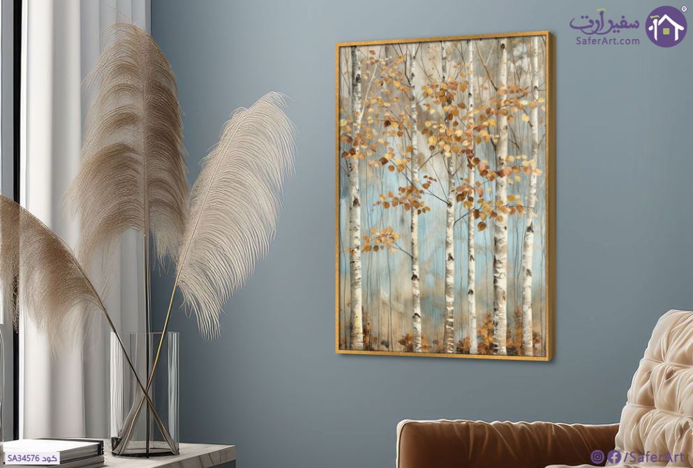 لوحة فنية منظر طبيعي لغابة من مجموعة أشجار البتولا بأوراقها الذهبية الجذابة برسم تجريدي، تابلوه مودرن مميز مناسب لجميع غرف المنزل .., متوفر بمقاسات متعددة يمكنك اختيار او تغيير المقاس عند الطلب ,بتصميم مميز لـ تابلوهات مودرن, تابلوهات مودرن , لوحات فنية مودرن غابات, مناظر طبيعية , التابلوه يغلب عليه الالوان بنى - بيج, رمادى, فضى – ذهبى , و مصمم بالشكل التالى 1 قطعه , بالطول, ببرواز, برواز ذهبى, مستطيل , مناسب لديكور حوائط غرفة الاستقبال, غرفة المعيشة, مدخل المنزل, مكاتب – شركات - اعمال , و هو يتميز بالسمات التالية : الوان زيتية - اكريليك, لوحات فنية, مودرن , متوفر الان فى مصر و يأتى جاهز للتركيب مع دليل التركيب و اكسسوارات التركيب اللازمه