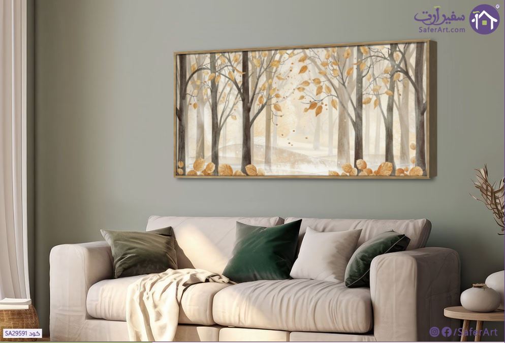 لوحة فنية لأشجار ومجموعة أوراق شجر ذهبية على خلفية بيج بتصميم راقي وأنيق, متوفر بمقاسات متعددة يمكنك اختيار او تغيير المقاس عند الطلب ,بتصميم مميز لـ تابلوهات مودرن, تابلوهات مودرن , لوحات فنية مودرن اشجار, مناظر طبيعية , التابلوه يغلب عليه الالوان برتقالى, بنى - بيج , و مصمم بالشكل التالى 1 قطعه , بالعرض, ببرواز, برواز خشبى, مستطيل , مناسب لديكور حوائط غرفة الاستقبال, غرفة المعيشة, مدخل المنزل , و هو يتميز بالسمات التالية : الوان مائية, بسيط و هادئ, تماثل - سيميترى, لوحات فنية, مودرن , متوفر الان فى مصر و يأتى جاهز للتركيب مع دليل التركيب و اكسسوارات التركيب اللازمه