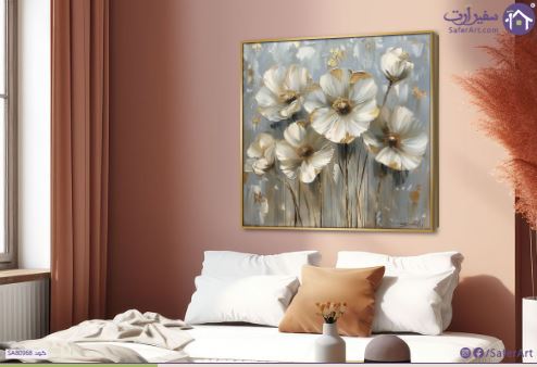 لوحات مودرن ورود بيضاء