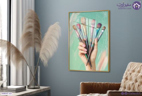 تابلوه يد و فرش الرسم, يد تحمل مجموعة من فرش الرسم بأحجام وأنواع مختلفة. تظهر اليد بوضوح مع أظافر مطلية باللون الوردي الفاتح، وهي تمسك بالفرش,الخلفية عبارة عن مزيج من الألوان الخضراء والبيضاء والوردية، بتأثيرات فرشاة خفيفة. الصورة تعطي انطباعاً فنياً وجمالياً، وتركز على أدوات الفنان., متوفر بمقاسات متعددة يمكنك اختيار او تغيير المقاس عند الطلب ,بتصميم مميز لـ تابلوهات مودرن, تابلوهات مودرن , لوحات فنية مودرن ايادى, هوايات, شخصيات و وجوه , التابلوه يغلب عليه الالوان اخضر - زيتى, بينك – فوشيا , و مصمم بالشكل التالى 1 قطعه , اكريليك, بالطول, ببرواز, برواز ذهبى, مستطيل , مناسب لديكور حوائط غرفة بنات, مكاتب – شركات - اعمال , و هو يتميز بالسمات التالية : الوان زيتية - اكريليك, لوحات فنية, مودرن , متوفر الان فى مصر و يأتى جاهز للتركيب مع دليل التركيب و اكسسوارات التركيب اللازمه