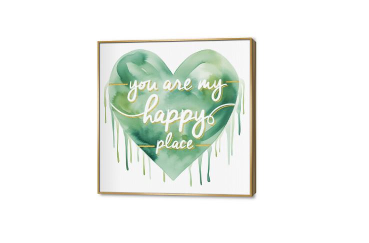 تابلوه مودرن رومانسي، لإحدى الجمل الرومانسية باللغة الإنجليزية " you are my happy place" داخل قلب باللون الفيروزي على خلفية بيضاء بتصميم مودرن رقيق., متوفر بمقاسات متعددة يمكنك اختيار او تغيير المقاس عند الطلب ,بتصميم مميز لـ تابلوهات مودرن, تابلوهات مودرن , لوحات فنية مودرن قلوب, English Text & Quotes, رومانسى , التابلوه يغلب عليه الالوان ابيض - اوف وايت, اخضر - زيتى , و مصمم بالشكل التالى 1 قطعه , ببرواز, برواز ذهبى, مربع , مناسب لديكور حوائط غرفة المعيشة, غرفة النوم , و هو يتميز بالسمات التالية : الوان مائية, ديجيتال آرت, كتابات و حروف, مودرن , متوفر الان فى مصر و يأتى جاهز للتركيب مع دليل التركيب و اكسسوارات التركيب اللازمه