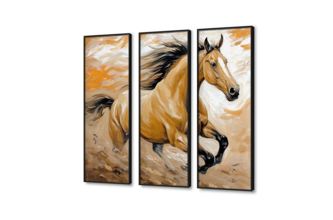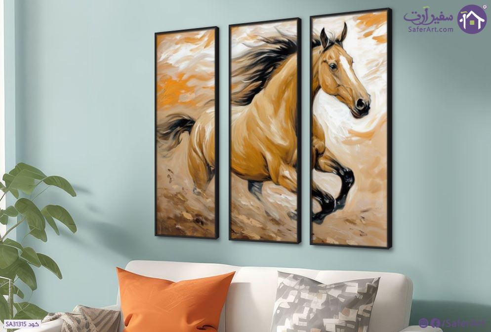 تابلوه مودرن لحصان مسرع رشيق باللون الذهبي على خلفية مموجه بمزيج اللون الذهبي مع الجراي تابلوه مناسب لغرف الشباب ومحبي الخيول, متوفر بمقاسات متعددة يمكنك اختيار او تغيير المقاس عند الطلب ,بتصميم مميز لـ تابلوهات مودرن, تابلوهات مودرن , لوحات فنية مودرن احصنه, حيوانات و طيور , التابلوه يغلب عليه الالوان ابيض - اوف وايت, اسود, بنى - بيج , و مصمم بالشكل التالى 3 قطع, متعدد القطع ( اى عدد ) , بالعرض, ببرواز, برواز اسود, مستطيل , مناسب لديكور حوائط غرفة الاستقبال, غرفة المعيشة, مدخل المنزل , و هو يتميز بالسمات التالية : الوان زيتية - اكريليك, لوحات فنية, مودرن , متوفر الان فى مصر و يأتى جاهز للتركيب مع دليل التركيب و اكسسوارات التركيب اللازمه