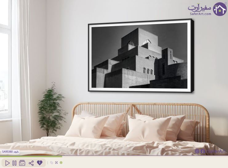 لوحة فنية تصور عظمة العمارة الاسلامية الحديثة في لقطة فوتوغرافية بالأبيض والأسود لمبنى متحف الفن الاسلامي حيث تتداخل الكتل الهندسية والظلال القوية لتخلق تكوينا بصريا فريدا، التصميم يعتمد على الزوايا الحادة والمنحنيات البسيطة التي تعكس جمال الهندسة المعمارية المستوحاة من التراث مع لمسة عصرية فريدة تضيف الرقي والفخامة لديكور منزلك او مكتبك., متوفر بمقاسات متعددة يمكنك اختيار او تغيير المقاس عند الطلب ,بتصميم مميز لـ تابلوهات مودرن, تابلوهات مودرن , لوحات فنية مودرن اسلامى - ايات قرآنية و خط عربى, اماكن اسلامية و عربية, اماكن و مدن و مباني, مبانى و هندسة معمارية , التابلوه يغلب عليه الالوان ابيض و اسود, اسود, الوان داكنة, رمادى , و مصمم بالشكل التالى 1 قطعه , بالعرض, ببرواز, برواز SF9, برواز اسود, مستطيل , مناسب لديكور حوائط غرفة الاستقبال, غرفة المعيشة, غرفة النوم, مدخل المنزل, مكاتب – شركات - اعمال , و هو يتميز بالسمات التالية : اشكال هندسية و زخارف, بسيط و هادئ, صور فوتوغرافية, مودرن , متوفر الان فى مصر و يأتى جاهز للتركيب مع دليل التركيب و اكسسوارات التركيب اللازمه