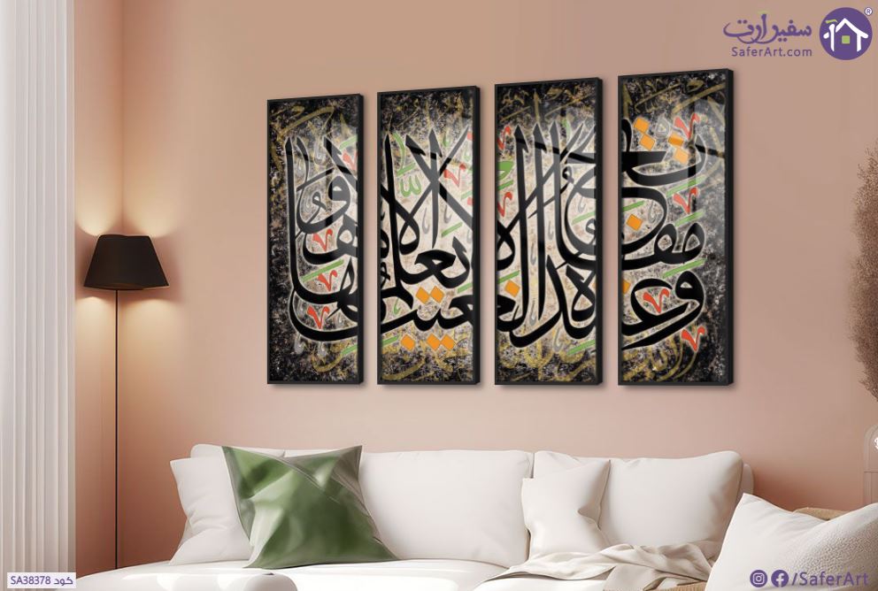 ﴿ وَعِندَهُ مَفَاتِحُ الْغَيْبِ لاَ يَعْلَمُهَا إِلاَّ هُوَ ﴾ تابلوه مودرن بكتابة عربية ونقوش إسلامية ، تابلوه مميز لمحبي الفن الإسلامي .., متوفر بمقاسات متعددة يمكنك اختيار او تغيير المقاس عند الطلب ,بتصميم مميز لـ تابلوهات مودرن, تابلوهات مودرن , لوحات فنية مودرن ايات قرآنية و خط عربى, اسلامى - ايات قرآنية و خط عربى , التابلوه يغلب عليه الالوان اسود, الوان داكنة, رمادى , و مصمم بالشكل التالى 4 قطع, متعدد القطع ( اى عدد ) , اكريليك, بالعرض, ببرواز, برواز اسود, مستطيل , مناسب لديكور حوائط غرفة الاستقبال, غرفة المعيشة, مدخل المنزل, مكاتب – شركات - اعمال , و هو يتميز بالسمات التالية : ديجيتال آرت, قابل للتعديل, كتابات و حروف, لوحات فنية, مودرن , متوفر الان فى مصر و يأتى جاهز للتركيب مع دليل التركيب و اكسسوارات التركيب اللازمه