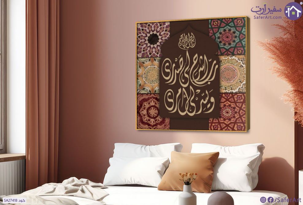 لمحبي الفن الإسلامي تابلوه مودرن ( رب اشرح لي صدري ويسر لي أمري ) بكتابة عربية باللون البني علي خلفية بنقوش اسلامية, متوفر بمقاسات متعددة يمكنك اختيار او تغيير المقاس عند الطلب ,بتصميم مميز لـ تابلوهات مودرن, تابلوهات مودرن , لوحات فنية مودرن ايات قرآنية و خط عربى, زخارف اسلامية, اسلامى - ايات قرآنية و خط عربى , التابلوه يغلب عليه الالوان بنى - بيج, فضى – ذهبى , و مصمم بالشكل التالى 1 قطعه , ببرواز, برواز ذهبى, مربع , مناسب لديكور حوائط غرفة الاستقبال, غرفة المعيشة, مدخل المنزل, مكاتب – شركات - اعمال , و هو يتميز بالسمات التالية : ديجيتال آرت, قابل للتعديل, كتابات و حروف, مودرن , متوفر الان فى مصر و يأتى جاهز للتركيب مع دليل التركيب و اكسسوارات التركيب اللازمه