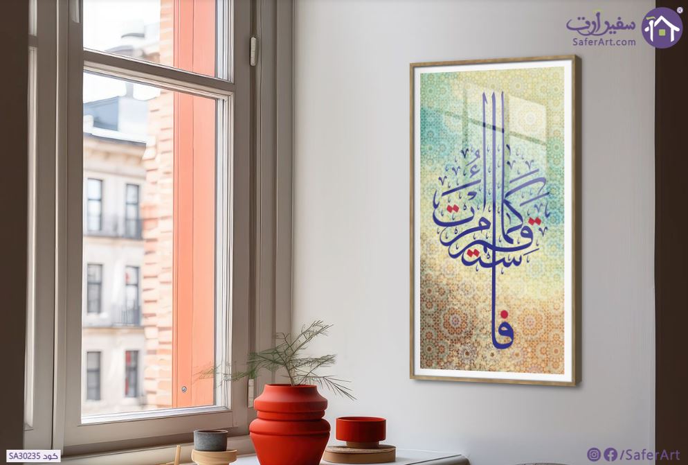 فَاسْتَقِمْ كَمَا أُمِرْتَ تابلوه مودرن بكتابة عربية ونقوش اسلامية باللون الأزرق على خلفية منقوشة باللون البيج والأزرق الفاتح تصميم إسلامي مودرن, متوفر بمقاسات متعددة يمكنك اختيار او تغيير المقاس عند الطلب ,بتصميم مميز لـ تابلوهات مودرن, تابلوهات مودرن , لوحات فنية مودرن ايات قرآنية و خط عربى, اسلامى - ايات قرآنية و خط عربى , التابلوه يغلب عليه الالوان اخضر - زيتى, ازرق - تركواز, اصفر , و مصمم بالشكل التالى 1 قطعه , اكريليك, بالطول, ببرواز, برواز SF9, برواز خشبى, مستطيل , مناسب لديكور حوائط غرفة الاستقبال, غرفة المعيشة, مدخل المنزل, مكاتب – شركات - اعمال , و هو يتميز بالسمات التالية : ديجيتال آرت, قابل للتعديل, كتابات و حروف, لوحات فنية, مودرن , متوفر الان فى مصر و يأتى جاهز للتركيب مع دليل التركيب و اكسسوارات التركيب اللازمه