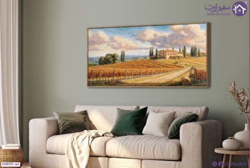 لوحات منظر طبيعي حقول ايطاليا, لوحة زيتية تصور منظراً طبيعياً خلاباً لإقليم توسكانا الإيطالي. تظهر في المقدمة حقول عنب ممتدة بلونها الذهبي الخريفي. خلفها يرتفع تل صغير يعلوه منزل ريفي تقليدي بألوانه الدافئة. تحيط بالمنزل أشجار السرو الطويلة التي تشتهر بها المنطقة. السماء زرقاء صافية تتخللها غيوم بيضاء رقيقة. تبعث اللوحة إحساساً بالهدوء والجمال الريفي., متوفر بمقاسات متعددة يمكنك اختيار او تغيير المقاس عند الطلب ,بتصميم مميز لـ تابلوهات مودرن, تابلوهات مودرن , لوحات فنية مودرن مزارع - حقول, مناظر طبيعية , التابلوه يغلب عليه الالوان اخضر - زيتى, ازرق - تركواز, اصفر , و مصمم بالشكل التالى 1 قطعه , بالعرض, ببرواز, برواز خشبى, مستطيل , مناسب لديكور حوائط غرفة المعيشة, مكاتب – شركات - اعمال , و هو يتميز بالسمات التالية : الوان زيتية - اكريليك, دول البحر المتوسط, عتيق - فينتاج, كلاسيك – نيو كلاسيك, لوحات فنية , متوفر الان فى مصر و يأتى جاهز للتركيب مع دليل التركيب و اكسسوارات التركيب اللازمه