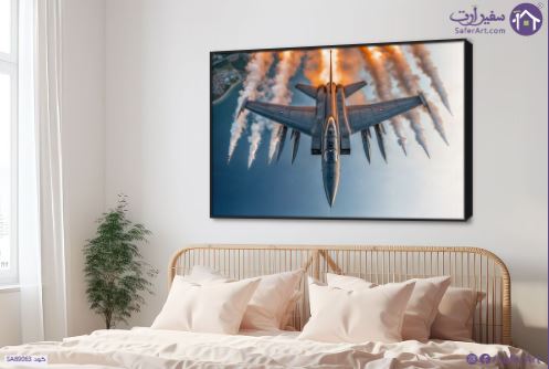 تابلوه حائط طائرة مقاتلة تحلق عند غروب الشمس