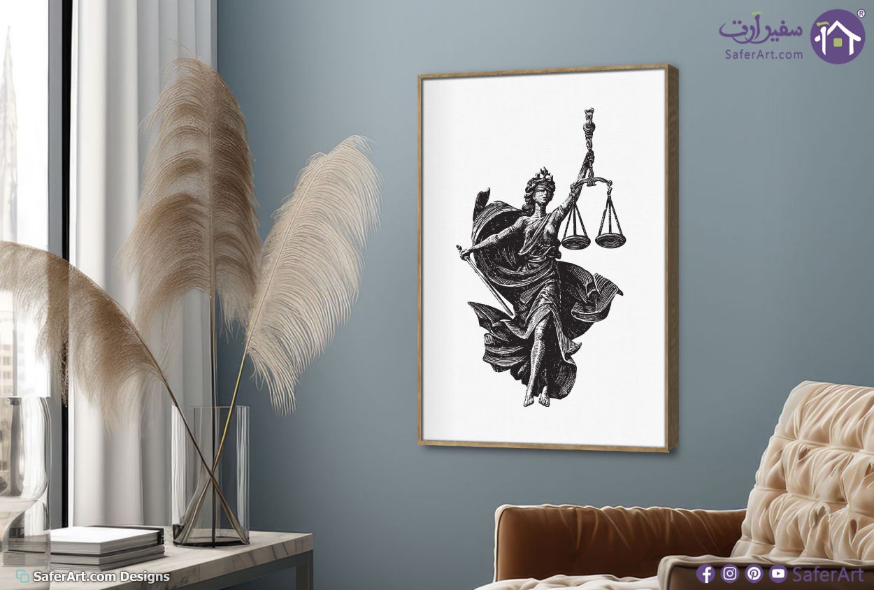 لوحة فنية كلاسيكية لتمثال العدالة للمكاتب والمحاماة
