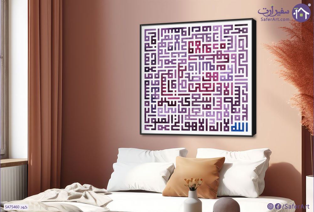 تابلوه مودرن ايه الكرسى بخط كوفى هندسى متناسق بدرجات الموف و الفوشيا على خلفيه بيضاء, متوفر بمقاسات متعددة يمكنك اختيار او تغيير المقاس عند الطلب ,بتصميم مميز لـ تابلوهات مودرن, تابلوهات مودرن , لوحات فنية مودرن زخارف اسلامية, اسلامى - ايات قرآنية و خط عربى , التابلوه يغلب عليه الالوان بينك – فوشيا, موف – ارجوانى , و مصمم بالشكل التالى 1 قطعه , مربع, ببرواز, برواز SF9, برواز اسود , مناسب لديكور حوائط غرفة الاستقبال, غرفة المعيشة, غرفة النوم, مكاتب – شركات - اعمال , و هو يتميز بالسمات التالية : ديجيتال آرت, كتابات و حروف, مودرن , متوفر الان فى مصر و يأتى جاهز للتركيب مع دليل التركيب و اكسسوارات التركيب اللازمه