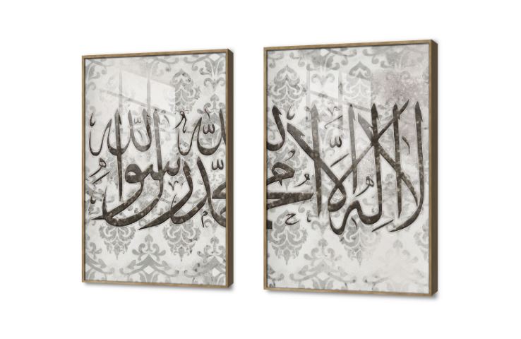 تابلوه مودرن قطعتين للشهادتين بدرجات الرمادى بخط الثلث, متوفر بمقاسات متعددة يمكنك اختيار او تغيير المقاس عند الطلب ,بتصميم مميز لـ تابلوهات مودرن, تابلوهات مودرن , لوحات فنية مودرن ايات قرآنية و خط عربى, اسلامى - ايات قرآنية و خط عربى , التابلوه يغلب عليه الالوان ابيض - اوف وايت, بنى - بيج, رمادى , و مصمم بالشكل التالى 2 قطعه, متعدد القطع ( اى عدد ) , بالعرض, اكريليك, ببرواز, برواز خشبى, مستطيل , مناسب لديكور حوائط غرفة الاستقبال, غرفة المعيشة, غرفة النوم, مدخل المنزل, مكاتب – شركات - اعمال , و هو يتميز بالسمات التالية : ديجيتال آرت, كتابات و حروف, مودرن , متوفر الان فى مصر و يأتى جاهز للتركيب مع دليل التركيب و اكسسوارات التركيب اللازمه