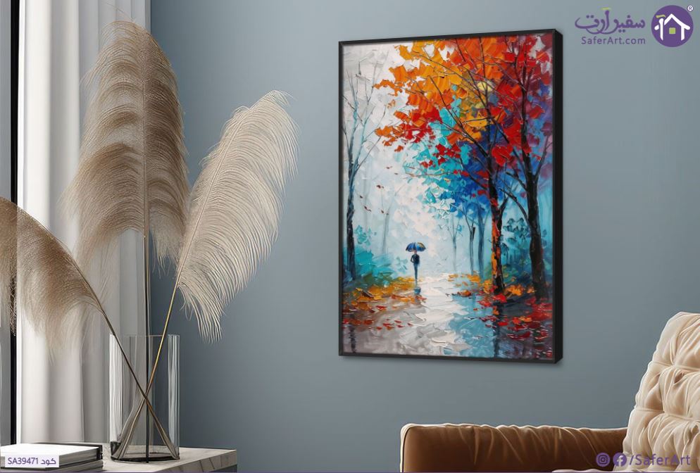 لوحة فنية كلاسيكية لشخص يحمل مظلة ويسير  في طريق ممتد بين الأشجار في أجواء ليلية ممطرة وحالمة., متوفر بمقاسات متعددة يمكنك اختيار او تغيير المقاس عند الطلب ,بتصميم مميز لـ تابلوهات مودرن, تابلوهات مودرن , لوحات فنية مودرن غابات, مناظر طبيعية , التابلوه يغلب عليه الالوان ابيض - اوف وايت, احمر - نبيتى, ازرق - تركواز, برتقالى , و مصمم بالشكل التالى 1 قطعه , بالطول, ببرواز, برواز اسود, مستطيل , مناسب لديكور حوائط غرفة الاستقبال, غرفة المعيشة, غرفة النوم , و هو يتميز بالسمات التالية : الوان زيتية - اكريليك, لوحات فنية , متوفر الان فى مصر و يأتى جاهز للتركيب مع دليل التركيب و اكسسوارات التركيب اللازمه