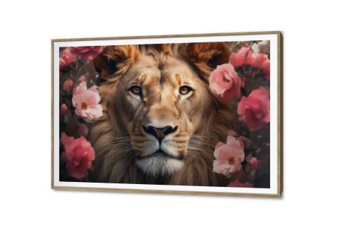 تابلوهات ديكور وجه اسد مع ورود بالوان بيج و بينك, متوفر بمقاسات متعددة يمكنك اختيار او تغيير المقاس عند الطلب ,بتصميم مميز لـ تابلوهات مودرن, تابلوهات مودرن , لوحات فنية مودرن حيوانات مفترسة, حيوانات و طيور , التابلوه يغلب عليه الالوان بينك – فوشيا, الوان داكنة, بنى - بيج , و مصمم بالشكل التالى 1 قطعه , مستطيل, بالعرض, ببرواز, برواز SF9, برواز خشبى , مناسب لديكور حوائط غرفة المعيشة, غرفة بنات , و هو يتميز بالسمات التالية : الستريشن - فيكتور, لوحات فنية, مودرن , متوفر الان فى مصر و يأتى جاهز للتركيب مع دليل التركيب و اكسسوارات التركيب اللازمه