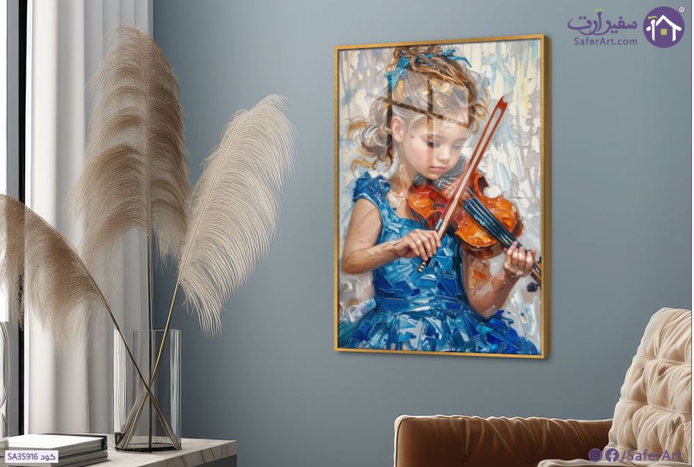 تابلوه مودرن ، رسم بنت صغيرة بشعر أحمر ترتدي فستانا أزرق وتعزف على آلة الكمان، تصميم جميل ورقيق مناسب لغرف البنات., متوفر بمقاسات متعددة يمكنك اختيار او تغيير المقاس عند الطلب ,بتصميم مميز لـ تابلوهات مودرن, تابلوهات مودرن , لوحات فنية مودرن اطفال, بنات, هوايات, شخصيات و وجوه, موسيقي , التابلوه يغلب عليه الالوان ازرق - تركواز, بنى - بيج , و مصمم بالشكل التالى 1 قطعه , اكريليك, بالطول, ببرواز, برواز ذهبى, مستطيل , مناسب لديكور حوائط غرفة الاستقبال, غرفة المعيشة, غرفة بنات , و هو يتميز بالسمات التالية : الوان زيتية - اكريليك, كلاسيك – نيو كلاسيك, لوحات فنية , متوفر الان فى مصر و يأتى جاهز للتركيب مع دليل التركيب و اكسسوارات التركيب اللازمه
