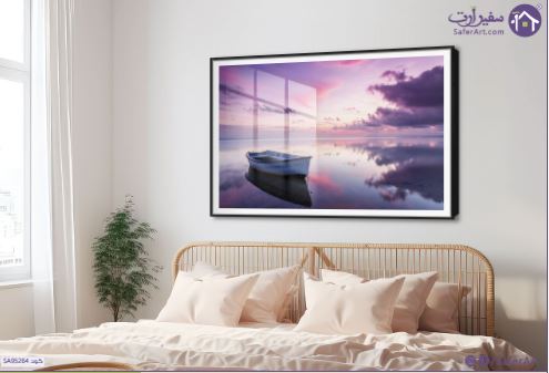 لوحات ديكور تصور مشهد طبيعي ساحر لقارب صغير يرسو بهدوء تام على سطح مياه بحيرة صافية كمرآة تعكس جمال ألوان السماء البنفسجية والوردية الخلابة عند الغروب بأسلوب فوتوغرافي واقعي يبرز جمال الطبيعة الصامتة والتناغم اللوني المريح للاعصاب مما يجعله قطعة فنية مثالية تضيف لمسة راقية من السكينة والاسترخاء لديكور منزلك العصري., متوفر بمقاسات متعددة يمكنك اختيار او تغيير المقاس عند الطلب ,بتصميم مميز لـ تابلوهات مودرن, تابلوهات مودرن , لوحات فنية مودرن بحار و شواطئ و مراكب, سحاب, شاطئ البحر, قوارب و مراكب, مناظر طبيعية , التابلوه يغلب عليه الالوان اللون الواحد, بينك – فوشيا, موف – ارجوانى , و مصمم بالشكل التالى 1 قطعه , اكريليك, بالعرض, ببرواز, برواز SF9, برواز اسود, مستطيل , مناسب لديكور حوائط غرفة الاستقبال, غرفة المعيشة, مدخل المنزل, مكاتب – شركات - اعمال , و هو يتميز بالسمات التالية : بسيط و هادئ, ديجيتال آرت, صور فوتوغرافية, مودرن , متوفر الان فى مصر و يأتى جاهز للتركيب مع دليل التركيب و اكسسوارات التركيب اللازمه