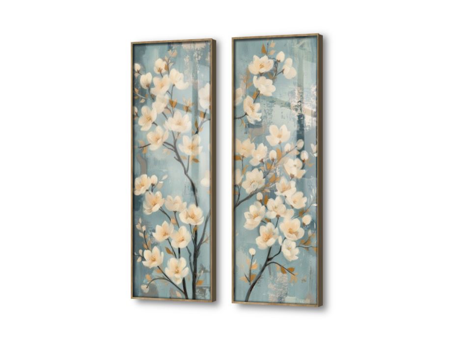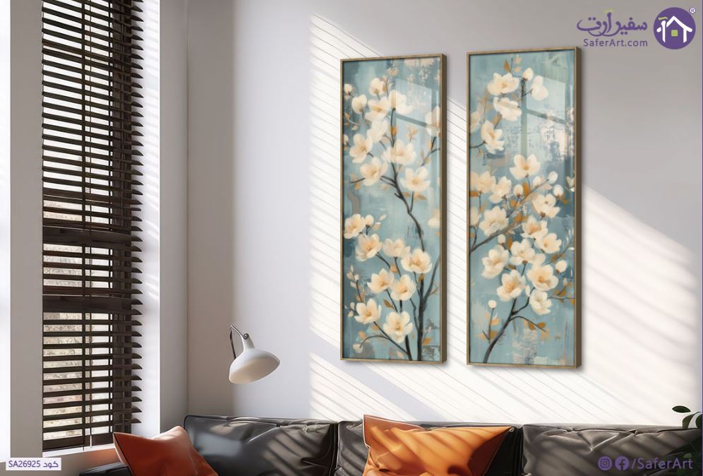 لوحة فنية لزهور المانغوليا البيضاء على خلفية باللون الأزرق الفاتح في تصميم هادي وبسيط طباعة بأعلى جودة., متوفر بمقاسات متعددة يمكنك اختيار او تغيير المقاس عند الطلب ,بتصميم مميز لـ تابلوهات مودرن, تابلوهات مودرن , لوحات فنية مودرن ورود - زهور - نباتات , التابلوه يغلب عليه الالوان ابيض - اوف وايت, ازرق - تركواز, رمادى , و مصمم بالشكل التالى 2 قطعه, متعدد القطع ( اى عدد ) , اكريليك, بالطول, ببرواز, برواز خشبى, مستطيل , مناسب لديكور حوائط غرفة الاستقبال, غرفة المعيشة, غرفة النوم, مدخل المنزل, مكاتب – شركات - اعمال , و هو يتميز بالسمات التالية : الوان زيتية - اكريليك, عتيق - فينتاج, لوحات فنية, مودرن , متوفر الان فى مصر و يأتى جاهز للتركيب مع دليل التركيب و اكسسوارات التركيب اللازمه
