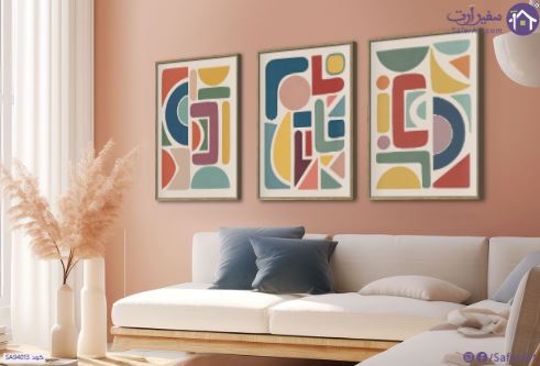 مجموعة لوحات ديكور مكونة من ثلاث قطع فنية بأسلوب تجريدي معاصر يجمع بين الأشكال الهندسية والعضوية المبسطة بتكوين متداخل وألوان هادئة ومتنوعة مثل الأحمر والأزرق والأصفر والأخضر على خلفية فاتحة مما يخلق قطعة فنية متوازنة ومفعمة بالحيوية تناسب المساحات الحديثة وتضيف لها لمسة من الأناقة والتميز., متوفر بمقاسات متعددة يمكنك اختيار او تغيير المقاس عند الطلب ,بتصميم مميز لـ تابلوهات مودرن, تابلوهات مودرن , لوحات فنية مودرن اشكال هندسية و زخارف, اعمال و شركات , التابلوه يغلب عليه الالوان ابيض - اوف وايت, احمر - نبيتى, اخضر - زيتى, ازرق - تركواز, اصفر, متعدد الالوان , و مصمم بالشكل التالى 3 قطع, متعدد القطع ( اى عدد ) , بالعرض, ببرواز, برواز خشبى, مستطيل , مناسب لديكور حوائط غرفة الاستقبال, غرفة المعيشة, غرفة النوم, مدخل المنزل, مكاتب – شركات - اعمال , و هو يتميز بالسمات التالية : اشكال هندسية و زخارف, الستريشن - فيكتور, بسيط و هادئ, بوهو ستايل, مودرن , متوفر الان فى مصر و يأتى جاهز للتركيب مع دليل التركيب و اكسسوارات التركيب اللازمه
