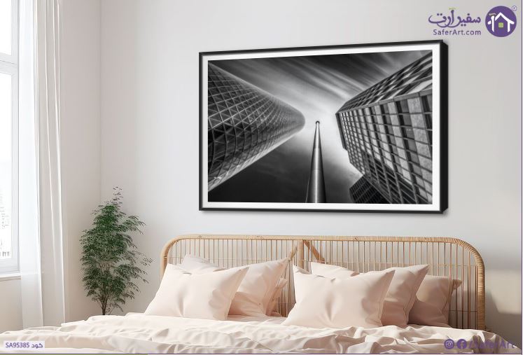 تابلوه مودرن كانفاس يجسد روعة العمارة الحديثة من خلال لقطة فنية بالأبيض والأسود لناطحات سحاب شاهقة، حيث استخدم المصور زاوية تصوير منخفضة مع تقنية التعريض الطويل للسماء لإبراز الخطوط الهندسية القوية للمباني وخلق إحساس بالعظمة والديناميكية، مما يجعله قطعة ديكور مثالية للمساحات العصرية التي تقدر الفن الفوتوغرافي المعماري الفريد., متوفر بمقاسات متعددة يمكنك اختيار او تغيير المقاس عند الطلب ,بتصميم مميز لـ تابلوهات مودرن, تابلوهات مودرن , لوحات فنية مودرن اعمال و شركات, اماكن و مدن و مباني, سياحة و سفر, مبانى و هندسة معمارية , التابلوه يغلب عليه الالوان ابيض و اسود, اسود, الوان داكنة, رمادى , و مصمم بالشكل التالى 1 قطعه , بالعرض, ببرواز, برواز SF9, برواز اسود, مستطيل , مناسب لديكور حوائط غرفة الاستقبال, غرفة المعيشة, مكاتب – شركات - اعمال , و هو يتميز بالسمات التالية : اشكال هندسية و زخارف, ديجيتال آرت, صور فوتوغرافية, مثلثات, مربعات, مودرن , متوفر الان فى مصر و يأتى جاهز للتركيب مع دليل التركيب و اكسسوارات التركيب اللازمه