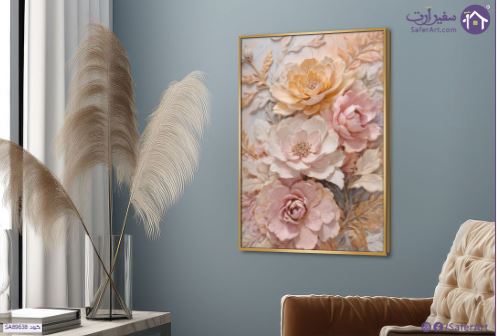تابلوه مودرن كانفس ازهار تحاكى الرسم البارز