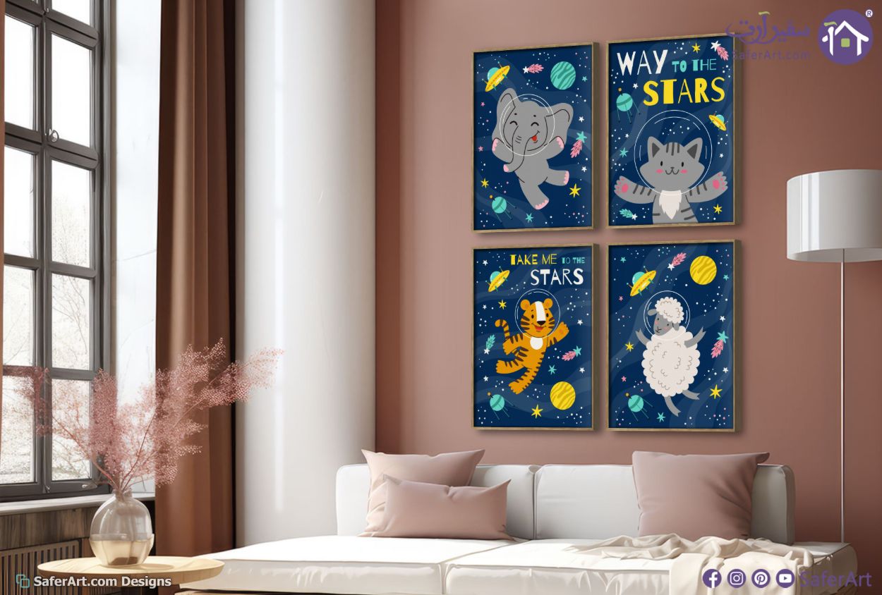 تابلوهات مودرن لغرف الأطفال بتصاميم فضاء كرتونية