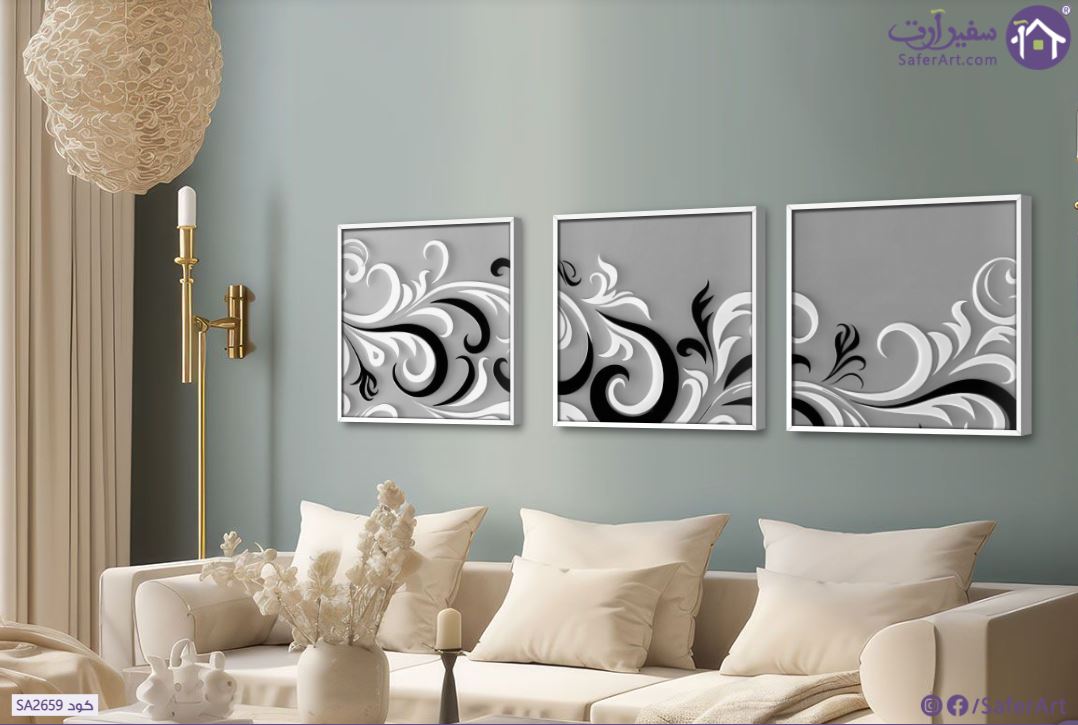تابلوه مودرن رمادى بسيط , 3 قطع بتصميم بسيط و انيق مستوحى من اوراق النباتات, يصلح لغرفه ريسيبشن او معيشه., متوفر بمقاسات متعددة يمكنك اختيار او تغيير المقاس عند الطلب ,بتصميم مميز لـ تابلوهات مودرن, تابلوهات مودرن , لوحات فنية مودرن اشكال هندسية و زخارف, اعمال و شركات, تجريدي , التابلوه يغلب عليه الالوان ابيض و اسود, رمادى , و مصمم بالشكل التالى 3 قطع, متعدد القطع ( اى عدد ) , بالعرض, ببرواز, برواز ابيض, مستطيل , مناسب لديكور حوائط غرفة الاستقبال, غرفة المعيشة, غرفة النوم, غرفة شباب, مدخل المنزل, مكاتب – شركات - اعمال , و هو يتميز بالسمات التالية : اشكال هندسية و زخارف, الستريشن - فيكتور, ديجيتال آرت, لوحات فنية, مودرن , متوفر الان فى مصر و يأتى جاهز للتركيب مع دليل التركيب و اكسسوارات التركيب اللازمه