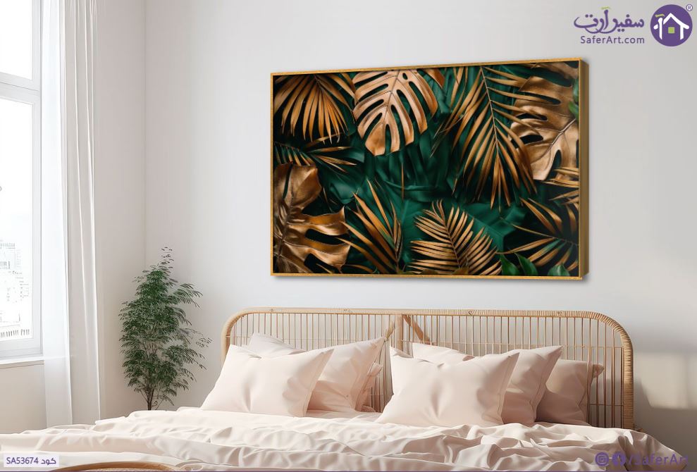 تابلوهات حائط لأوراق شجر استوائية بلمسة ذهبية فخمة