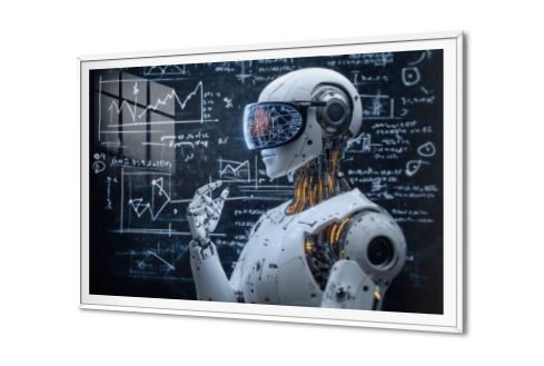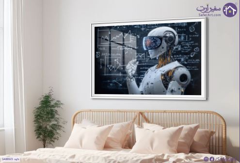تابلوه حائط روبوت حديث, يقف أمام سبورة مليئة بالمعادلات الرياضية والرسوم البيانية بينما يرتدي نظارات واقع افتراضي ويبدو في وضعية تفكير أو تحليل، يدمج التصميم الفني بين التكنولوجيا المتقدمة والبيئة الأكاديمية مما يخلق تباينا مثيرا بين الذكاء الاصطناعي والتفكير البشري ويعكس التقدم التكنولوجي في مجال الذكاء الاصطناعي والروبوتات., متوفر بمقاسات متعددة يمكنك اختيار او تغيير المقاس عند الطلب ,بتصميم مميز لـ تابلوهات مودرن, تابلوهات مودرن , لوحات فنية مودرن اعمال و شركات, تكنولوجى, تكنولوجى و معلومات , التابلوه يغلب عليه الالوان ابيض - اوف وايت, اسود, الوان داكنة, رمادى , و مصمم بالشكل التالى 1 قطعه , اكريليك, بالعرض, ببرواز, برواز SF9, برواز ابيض, مستطيل , مناسب لديكور حوائط غرفة شباب, مكاتب – شركات - اعمال , و هو يتميز بالسمات التالية : ديجيتال آرت, مودرن , متوفر الان فى مصر و يأتى جاهز للتركيب مع دليل التركيب و اكسسوارات التركيب اللازمه