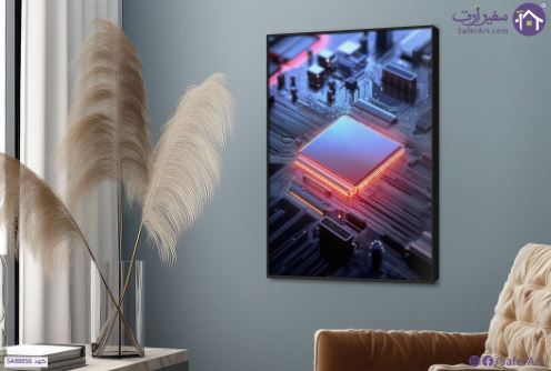 تابلوه معالج إلكتروني دقيق, صورة مُكبّرة جدًا لمُعالج إلكتروني دقيق أو شريحة إلكترونية يبرز مربعًا لامعًا في وسط الصورة مُحاطًا بدوائر إلكترونية دقيقة وخطوط توصيل رفيعة مع إضاءة بعض أجزاء اللوحة بألوان زاهية كالأحمر والأزرق, ما يُعزز الإحساس بعالم التكنولوجيا المُتقدّمة والدوائر الإلكترونية المُعقدة مع التركيز على إظهار المُعالج كمركز للوحة الإلكترونية., متوفر بمقاسات متعددة يمكنك اختيار او تغيير المقاس عند الطلب ,بتصميم مميز لـ تابلوهات مودرن, تابلوهات مودرن , لوحات فنية مودرن اعمال و شركات, تكنولوجى, تكنولوجى و معلومات , التابلوه يغلب عليه الالوان ازرق - تركواز, اسود, برتقالى , و مصمم بالشكل التالى 1 قطعه , بالطول, ببرواز, برواز اسود, مستطيل , مناسب لديكور حوائط غرفة شباب, مكاتب – شركات - اعمال , و هو يتميز بالسمات التالية : ديجيتال آرت, لوحات فنية, مودرن, نيون ستايل , متوفر الان فى مصر و يأتى جاهز للتركيب مع دليل التركيب و اكسسوارات التركيب اللازمه