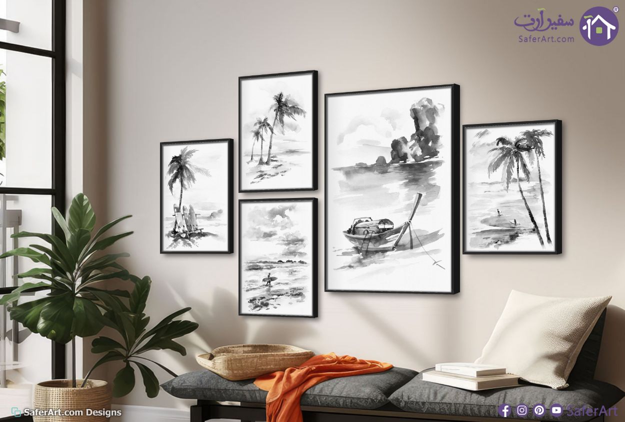 لوحات حائط مودرن شاطئية باللون الاسود والابيض