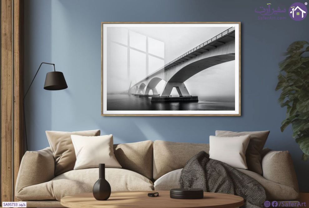 لوحة فنية تصور جسر خرساني ضخم يمتد فوق الماء بهدوء ليختفي تدريجيا في الضباب الكثيف باسلوب تصوير فوتوغرافي بالابيض والاسود يركز على الخطوط الهندسية القوية والمنظور العميق مما يخلق احساس بالغموض والهدوء والجمال المعماري البسيط ويجعلها قطعة ديكور مميزة للحوائط المودرن., متوفر بمقاسات متعددة يمكنك اختيار او تغيير المقاس عند الطلب ,بتصميم مميز لـ تابلوهات مودرن, تابلوهات مودرن , لوحات فنية مودرن اعمال و شركات, اماكن و مدن و مباني, سياحة و سفر, مبانى و هندسة معمارية , التابلوه يغلب عليه الالوان ابيض و اسود, اسود, اللون الواحد, رمادى , و مصمم بالشكل التالى 1 قطعه , بالعرض, ببرواز, برواز SF9, برواز خشبى, مستطيل , مناسب لديكور حوائط غرفة الاستقبال, غرفة المعيشة, غرفة النوم, مدخل المنزل, مكاتب – شركات - اعمال , و هو يتميز بالسمات التالية : بسيط و هادئ, ديجيتال آرت, صور فوتوغرافية, مودرن , متوفر الان فى مصر و يأتى جاهز للتركيب مع دليل التركيب و اكسسوارات التركيب اللازمه