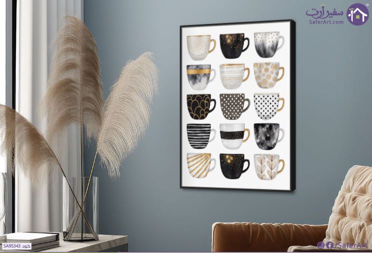 لوحة فنية مميزة تعرض تشكيلة رائعة من اكواب القهوة المرسومة باسلوب الالوان المائية المعاصر، حيث يتميز كل كوب بتصميم فريد يجمع بين النقاط والخطوط والاشكال الهندسية والزخارف الذهبية الانيقة باللونين الاسود والابيض، مما يخلق قطعة فنية جذابة تضيف لمسة من الابداع والدفء لاي ركن في منزلك او مكتبك., متوفر بمقاسات متعددة يمكنك اختيار او تغيير المقاس عند الطلب ,بتصميم مميز لـ تابلوهات مودرن, تابلوهات مودرن , لوحات فنية مودرن اشكال هندسية و زخارف, قهوة, مشروبات – اطعمة - المطبخ, مشروبات و عصائر , التابلوه يغلب عليه الالوان ابيض - اوف وايت, ابيض و اسود, اسود, بنى - بيج, رمادى, فضى – ذهبى , و مصمم بالشكل التالى 1 قطعه , بالطول, ببرواز, برواز اسود, مستطيل , مناسب لديكور حوائط غرفة الاستقبال, غرفة الطعام - المطبخ, مكاتب – شركات - اعمال , و هو يتميز بالسمات التالية : اشكال هندسية و زخارف, ديجيتال آرت, مودرن , متوفر الان فى مصر و يأتى جاهز للتركيب مع دليل التركيب و اكسسوارات التركيب اللازمه