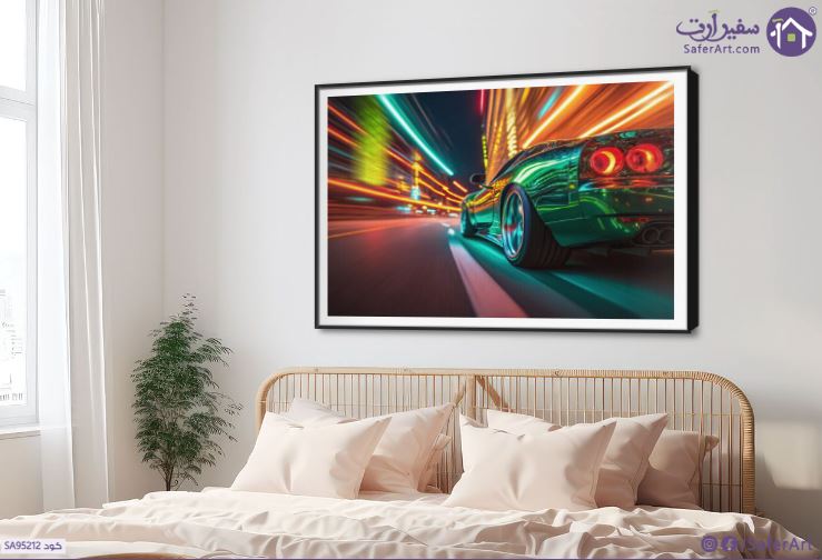 لوحة فنية تصور سيارة رياضية خضراء لامعة تنطلق بسرعة فائقة في شوارع مدينة ليلية حيث تتحول اضواء النيون والمباني الى خطوط لونية متوهجة باللون البرتقالي والازرق مما يخلق احساسا قويا بالحركة والطاقة والحياة العصرية الصاخبة ويعكس التصميم اسلوب الفن الرقمي الذي يبرز جمال السرعة وديناميكية المشهد الحضري في لوحة مفعمة بالحياة., متوفر بمقاسات متعددة يمكنك اختيار او تغيير المقاس عند الطلب ,بتصميم مميز لـ تابلوهات مودرن, تابلوهات مودرن , لوحات فنية مودرن سيارات, سيارات – دراجات - مواصلات , التابلوه يغلب عليه الالوان اخضر - زيتى, اسود, الوان داكنة, برتقالى, متعدد الالوان , و مصمم بالشكل التالى 1 قطعه , بالعرض, ببرواز, برواز SF9, برواز اسود, مستطيل , مناسب لديكور حوائط غرفة الاستقبال, غرفة المعيشة, غرفة النوم, غرفة شباب, مكاتب – شركات - اعمال , و هو يتميز بالسمات التالية : ديجيتال آرت, مودرن, نيون ستايل , متوفر الان فى مصر و يأتى جاهز للتركيب مع دليل التركيب و اكسسوارات التركيب اللازمه