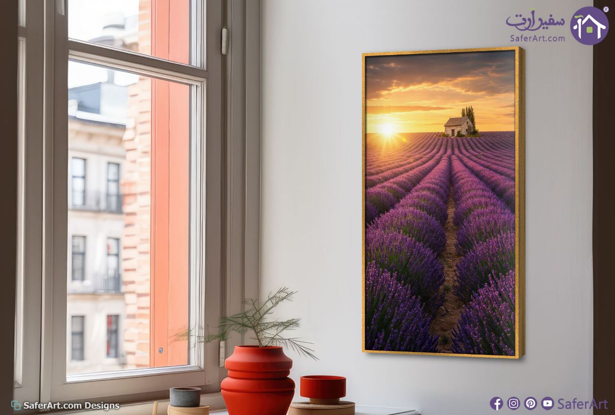 لوحات حائط مودرن لحقول اللافندر وقت الغروب
