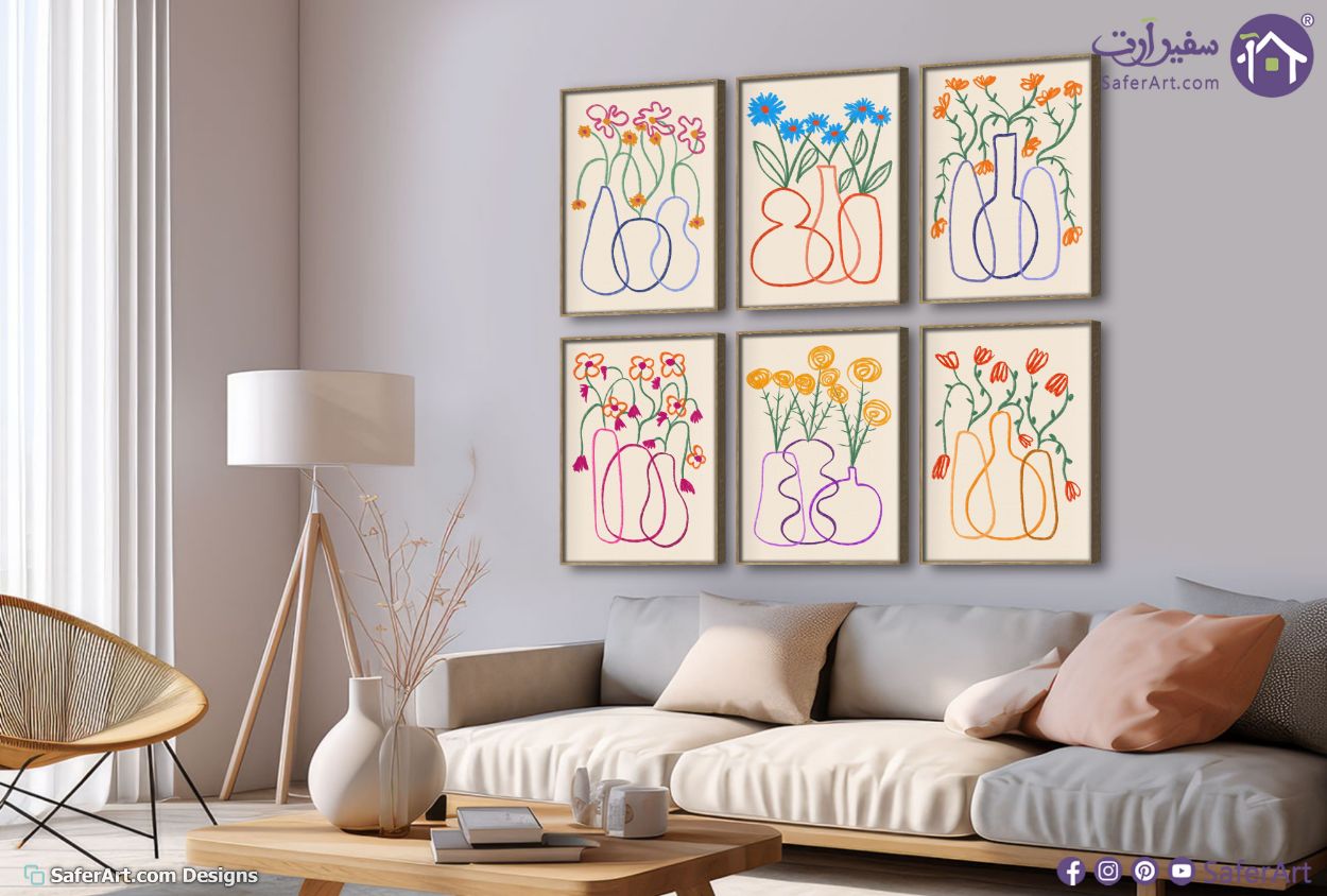 تابلوهات مودرن لزهور ملونة بتصميم خطي بسيط