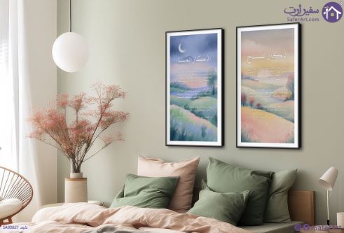 لوحات حائط مودرن اذكار الصباح و المساء, تجمع بين الخلفية الهادئة والنصوص العربية الواضحة. تم استخدام درجات ألوان مريحة للعين، مع التركيز على اللون الأبيض للنصوص لإبرازها على الخلفية, متوفر بمقاسات متعددة يمكنك اختيار او تغيير المقاس عند الطلب ,بتصميم مميز لـ تابلوهات مودرن, تابلوهات مودرن , لوحات فنية مودرن اذكار و ادعية, اسلامى - ايات قرآنية و خط عربى, مناظر طبيعية , التابلوه يغلب عليه الالوان اخضر - زيتى, ازرق - تركواز, اصفر, برتقالى , و مصمم بالشكل التالى 2 قطعه, متعدد القطع ( اى عدد ) , بالطول, ببرواز, برواز SF9, برواز اسود, مستطيل , مناسب لديكور حوائط غرفة المعيشة, غرفة النوم, غرفة بنات, مدخل المنزل , و هو يتميز بالسمات التالية : الوان مائية, قابل للتعديل, كتابات و حروف, لوحات فنية, مودرن , متوفر الان فى مصر و يأتى جاهز للتركيب مع دليل التركيب و اكسسوارات التركيب اللازمه