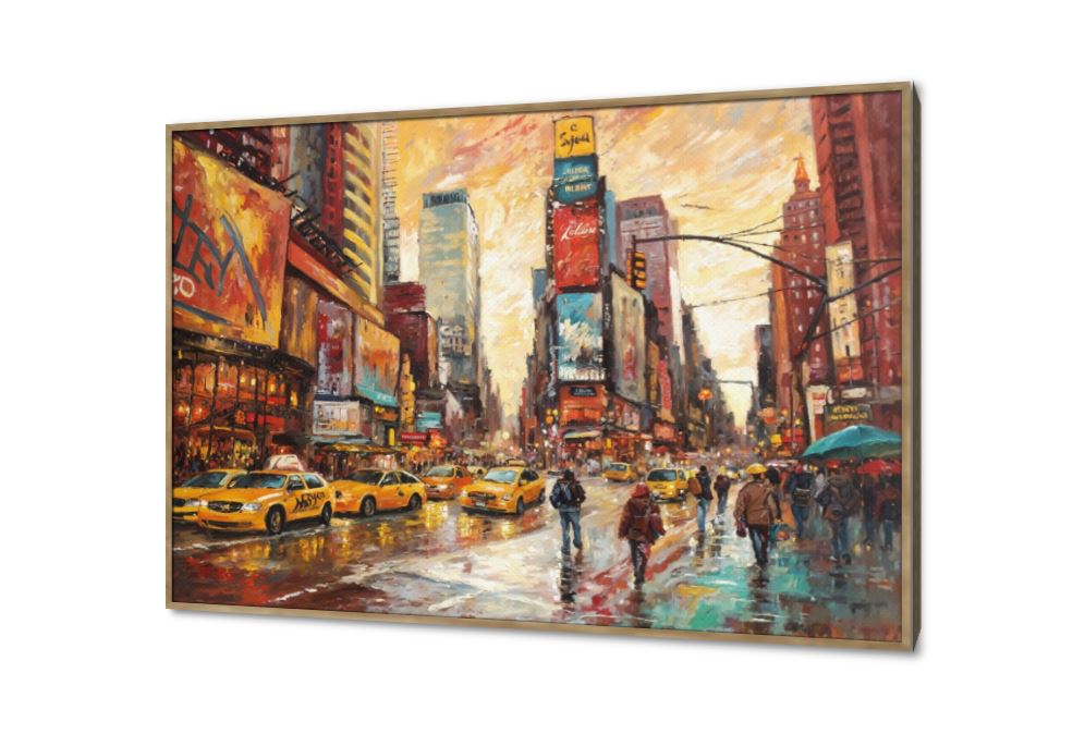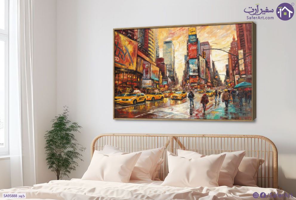 هذه اللوحة الفنية تصور مشهد مدينة نيويورك النابضة بالحياة في يوم ممطر باسلوب فني انطباعي فريد حيث تتألق سيارات الاجرة الصفراء واضواء المباني الشاهقة المنعكسة على الاسفلت المبلل بضربات فرشاة جريئة وسريعة تنقل إحساس الحركة والدفء وتجعل هذا التابلوه إضافة رائعة لديكور منزلك., متوفر بمقاسات متعددة يمكنك اختيار او تغيير المقاس عند الطلب ,بتصميم مميز لـ تابلوهات مودرن, تابلوهات مودرن , لوحات فنية مودرن اعمال و شركات, اماكن و مدن و مباني, دول و مدن مشهورة, سياحة و سفر, سيارات, سيارات – دراجات - مواصلات, شخصيات و وجوه, مبانى و هندسة معمارية , التابلوه يغلب عليه الالوان اصفر, برتقالى, قوى و زاهى, متعدد الالوان , و مصمم بالشكل التالى 1 قطعه , بالعرض, ببرواز, برواز خشبى, مستطيل , مناسب لديكور حوائط غرفة الاستقبال, غرفة المعيشة, غرفة النوم, غرفة شباب, مدخل المنزل, مكاتب – شركات - اعمال , و هو يتميز بالسمات التالية : الوان زيتية - اكريليك, كلاسيك – نيو كلاسيك, لوحات فنية, مودرن , متوفر الان فى مصر و يأتى جاهز للتركيب مع دليل التركيب و اكسسوارات التركيب اللازمه