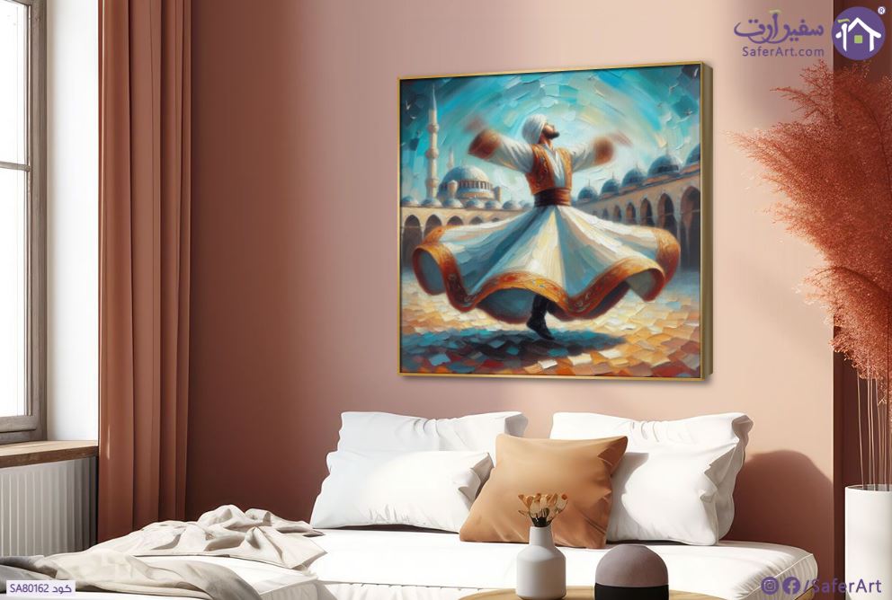 تابلوه مودرن مصمم باسلوب الرسم الزيتى بالوان زاهيه و مبهجه ل رقص - مولوية من التراث العربى و الاسلامى, متوفر بمقاسات متعددة يمكنك اختيار او تغيير المقاس عند الطلب ,بتصميم مميز لـ تابلوهات مودرن, تابلوهات مودرن , لوحات فنية مودرن المولوية - الصوفية, اسلامى - ايات قرآنية و خط عربى , التابلوه يغلب عليه الالوان برتقالى, ازرق - تركواز , و مصمم بالشكل التالى 1 قطعه , مربع, ببرواز, برواز ذهبى , مناسب لديكور حوائط غرفة المعيشة , و هو يتميز بالسمات التالية : الوان زيتية - اكريليك, لوحات فنية, مودرن , متوفر الان فى مصر و يأتى جاهز للتركيب مع دليل التركيب و اكسسوارات التركيب اللازمه