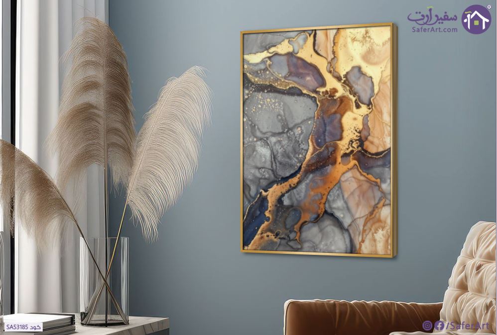 لوحة فنية برسم تجريدي رخامي يجمع بين درجات اللونين الذهبى و الاسود. بتصميم مودرن أنيق, متوفر بمقاسات متعددة يمكنك اختيار او تغيير المقاس عند الطلب ,بتصميم مميز لـ تابلوهات مودرن, تابلوهات مودرن , لوحات فنية مودرن تجريدي , التابلوه يغلب عليه الالوان اسود, رمادى, فضى – ذهبى , و مصمم بالشكل التالى 1 قطعه , بالطول, ببرواز, برواز ذهبى, مستطيل , مناسب لديكور حوائط غرفة الاستقبال, غرفة المعيشة, مدخل المنزل, مكاتب – شركات - اعمال , و هو يتميز بالسمات التالية : الوان مائية, لوحات فنية, مودرن , متوفر الان فى مصر و يأتى جاهز للتركيب مع دليل التركيب و اكسسوارات التركيب اللازمه
