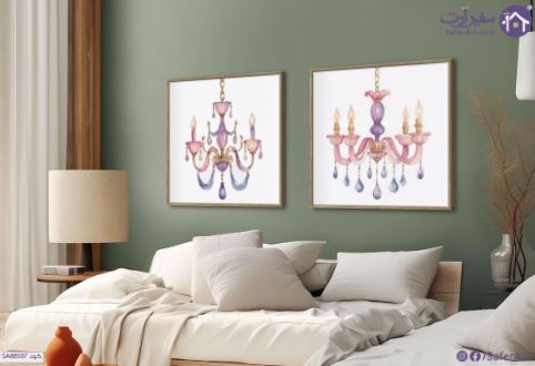 تابلوه مودرن كانفس نجف بالوان باستيل هادئة, كلا النجفتين مزينتان بقطرات كريستالية متدلية بألوان متناسقة مع ألوان النجفة نفسها. يعتمد الأسلوب الفني على استخدام الألوان المائية لخلق تأثير ناعم وشفاف، مع التركيز على الخطوط المنحنية والأنيقة لتجسيد شكل النجفات. التصميم بشكل عام يضفي إحساسًا بالرقة والأنوثة والبساطة., متوفر بمقاسات متعددة يمكنك اختيار او تغيير المقاس عند الطلب ,بتصميم مميز لـ تابلوهات مودرن, تابلوهات مودرن , لوحات فنية مودرن نجف و إضائة, طبيعه صامتة , التابلوه يغلب عليه الالوان ابيض - اوف وايت, بينك – فوشيا, درجات الباستيل, موف – ارجوانى , و مصمم بالشكل التالى 2 قطعه, متعدد القطع ( اى عدد ) , بالعرض, ببرواز, مربع, مستطيل , مناسب لديكور حوائط غرفة المعيشة, غرفة بنات, مكاتب – شركات - اعمال , و هو يتميز بالسمات التالية : الوان مائية, بسيط و هادئ, تماثل - سيميترى, لوحات فنية, مودرن , متوفر الان فى مصر و يأتى جاهز للتركيب مع دليل التركيب و اكسسوارات التركيب اللازمه