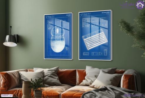 تابلوهات مخططات اساسيه لاكسسوارات كمبيوتر, رسمتين متجاورين على خلفية زرقاء يُمثل الأول تصميمًا تخطيطيًا لفأرة حاسوب والثاني تصميمًا تخطيطيًا للوحة مفاتيح مع خطوط بيضاء رفيعة تُحدد أبعاد ومكونات الأجهزة وبعض الكتابات التقنية الصغيرة، مُنفذًا بأسلوب الرسم التقني أو الرسم الهندسي حيث تُستخدم خطوط بيضاء دقيقة ومنظمة على خلفية زرقاء لتمثيل الأبعاد والمكونات الداخلية والخارجية للأجهزة مع التركيز على الدقة والتفصيل في رسم الخطوط والأشكال الهندسية وإهمال التفاصيل الجمالية أو الفنية الأخرى، ما يُعزز الإحساس بالتقنية والهندسة والتصميم ويُوحي بفكرة التصميم والتخطيط الهندسي للأجهزة الإلكترونية بشكل دقيق ومفصل., متوفر بمقاسات متعددة يمكنك اختيار او تغيير المقاس عند الطلب ,بتصميم مميز لـ تابلوهات مودرن, تابلوهات مودرن , لوحات فنية مودرن اعمال و شركات, تكنولوجى, تكنولوجى و معلومات , التابلوه يغلب عليه الالوان ابيض - اوف وايت, ازرق - تركواز , و مصمم بالشكل التالى 2 قطعه, متعدد القطع ( اى عدد ) , اكريليك, بالعرض, ببرواز, برواز ابيض, مربع , مناسب لديكور حوائط غرفة شباب, مكاتب – شركات - اعمال , و هو يتميز بالسمات التالية : ديجيتال آرت, لوحات فنية, مودرن , متوفر الان فى مصر و يأتى جاهز للتركيب مع دليل التركيب و اكسسوارات التركيب اللازمه