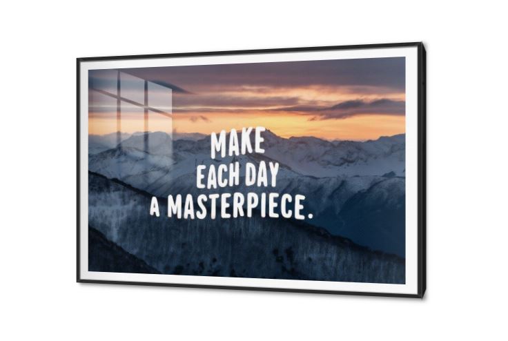 لوحات مودرن، لإحدى المقولات التحفيزية ”Make each day your masterpiece.” بتصميم مميز بكتابة باللغة الانجليزية ، تابلوه مناسب لغرف الشباب والمكاتب والشركات. , متوفر بمقاسات متعددة يمكنك اختيار او تغيير المقاس عند الطلب ,بتصميم مميز لـ تابلوهات مودرن, تابلوهات مودرن , لوحات فنية مودرن جبال, English Text & Quotes, مناظر طبيعية , التابلوه يغلب عليه الالوان برتقالى, الوان داكنة, رمادى , و مصمم بالشكل التالى 1 قطعه , اكريليك, بالعرض, ببرواز, برواز SF9, برواز اسود, مستطيل , مناسب لديكور حوائط غرفة المعيشة, غرفة شباب, مكاتب – شركات - اعمال , و هو يتميز بالسمات التالية : ديجيتال آرت, كتابات و حروف, مودرن , متوفر الان فى مصر و يأتى جاهز للتركيب مع دليل التركيب و اكسسوارات التركيب اللازمه