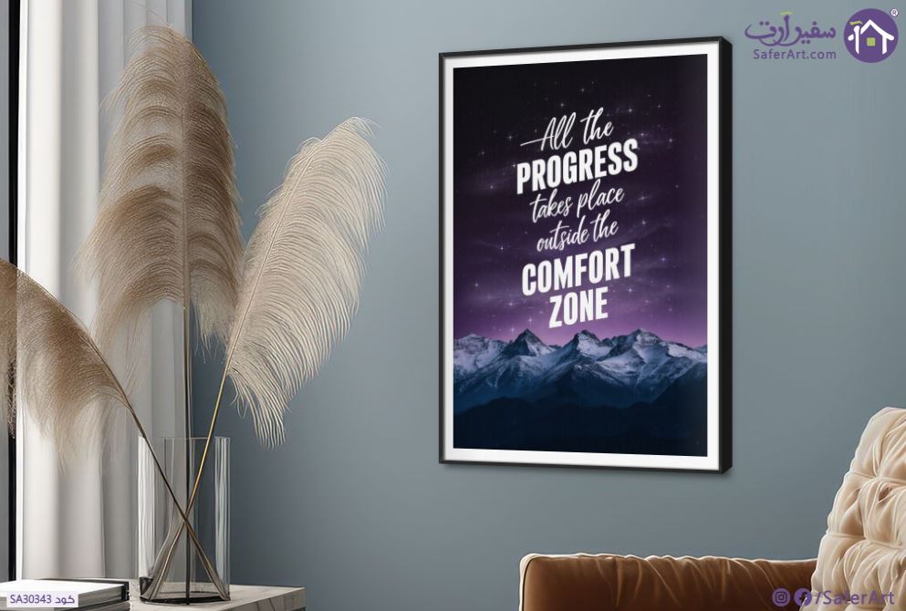 all progress takes place outside the comfort zone تابلوه مودرن للحكمة " كل التقدم يحدث خارج منطقة الراحة" لجون بوباك مناسب لغرف المكتب وغرف الشباب والبنات, متوفر بمقاسات متعددة يمكنك اختيار او تغيير المقاس عند الطلب ,بتصميم مميز لـ تابلوهات مودرن, تابلوهات مودرن , لوحات فنية مودرن English Text & Quotes , التابلوه يغلب عليه الالوان موف – ارجوانى, اسود, الوان داكنة , و مصمم بالشكل التالى 1 قطعه , بالطول, ببرواز, برواز SF9, برواز اسود, مستطيل , مناسب لديكور حوائط غرفة المعيشة, غرفة شباب, مكاتب – شركات - اعمال , و هو يتميز بالسمات التالية : ديجيتال آرت, كتابات و حروف, مودرن , متوفر الان فى مصر و يأتى جاهز للتركيب مع دليل التركيب و اكسسوارات التركيب اللازمه