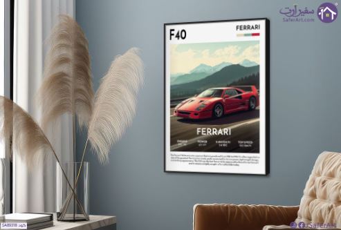 تابلوه مودرن سيارة فيراري F40 حمراء, تظهر تفاصيلها بوضوح مع خلفية طبيعية لجبال و أشجار و سماء و في الأسفل معلومات عن السيارة كالمحرك و الطاقة و التسارع و السرعة القصوى و في الأسفل يوجد وصف مختصر باللغة الإنجليزية عن السيارة و تاريخها، مع استخدام ألوان زاهية وخطوط واضحة لإبراز جمال تصميم السيارة، ما يُعزز الإحساس بالفخامة و الأداء الرياضي و التكنولوجيا المتطورة و يُوحي بفكرة السرعة و التفوق و الإثارة., متوفر بمقاسات متعددة يمكنك اختيار او تغيير المقاس عند الطلب ,بتصميم مميز لـ تابلوهات مودرن, تابلوهات مودرن , لوحات فنية مودرن English Text & Quotes, سيارات, سيارات – دراجات - مواصلات , التابلوه يغلب عليه الالوان احمر - نبيتى, ازرق - تركواز, بنى - بيج , و مصمم بالشكل التالى 1 قطعه , بالطول, ببرواز, برواز اسود, مستطيل , مناسب لديكور حوائط غرفة شباب, مكاتب – شركات - اعمال , و هو يتميز بالسمات التالية : ديجيتال آرت, كتابات و حروف, مودرن , متوفر الان فى مصر و يأتى جاهز للتركيب مع دليل التركيب و اكسسوارات التركيب اللازمه
