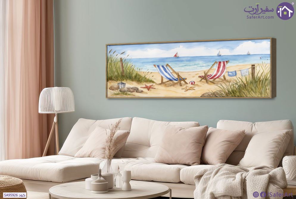 تابلوه مودرن يصور مشهد شاطئ هادئ في يوم صيفي مشمس حيث تظهر كراسي البحر على الرمال الذهبية والقوارب الشراعية تطفو على مياه البحر الزرقاء الصافية، مرسومة بأسلوب الألوان المائية الذي يضفي على اللوحة إحساسا بالسكينة والاسترخاء ويجعلها قطعة فنية مثالية لتزيين أي جدار وإضافة لمسة من الطبيعة الساحلية إلى ديكورك المنزلي., متوفر بمقاسات متعددة يمكنك اختيار او تغيير المقاس عند الطلب ,بتصميم مميز لـ تابلوهات مودرن, تابلوهات مودرن , لوحات فنية مودرن بحار و شواطئ و مراكب, حيوانات و طيور, دول و مدن مشهورة, سياحة و سفر, شاطئ البحر, قوارب و مراكب, كائنات بحرية - اسماك, لوحات مدن على البحر, مناظر طبيعية , التابلوه يغلب عليه الالوان اخضر - زيتى, ازرق - تركواز, بنى - بيج, متعدد الالوان , و مصمم بالشكل التالى 1 قطعه , بالعرض, ببرواز, برواز خشبى, مستطيل , مناسب لديكور حوائط غرفة الاستقبال, غرفة المعيشة, غرفة النوم, مدخل المنزل, مكاتب – شركات - اعمال , و هو يتميز بالسمات التالية : الوان مائية, بسيط و هادئ, لوحات فنية, مودرن , متوفر الان فى مصر و يأتى جاهز للتركيب مع دليل التركيب و اكسسوارات التركيب اللازمه