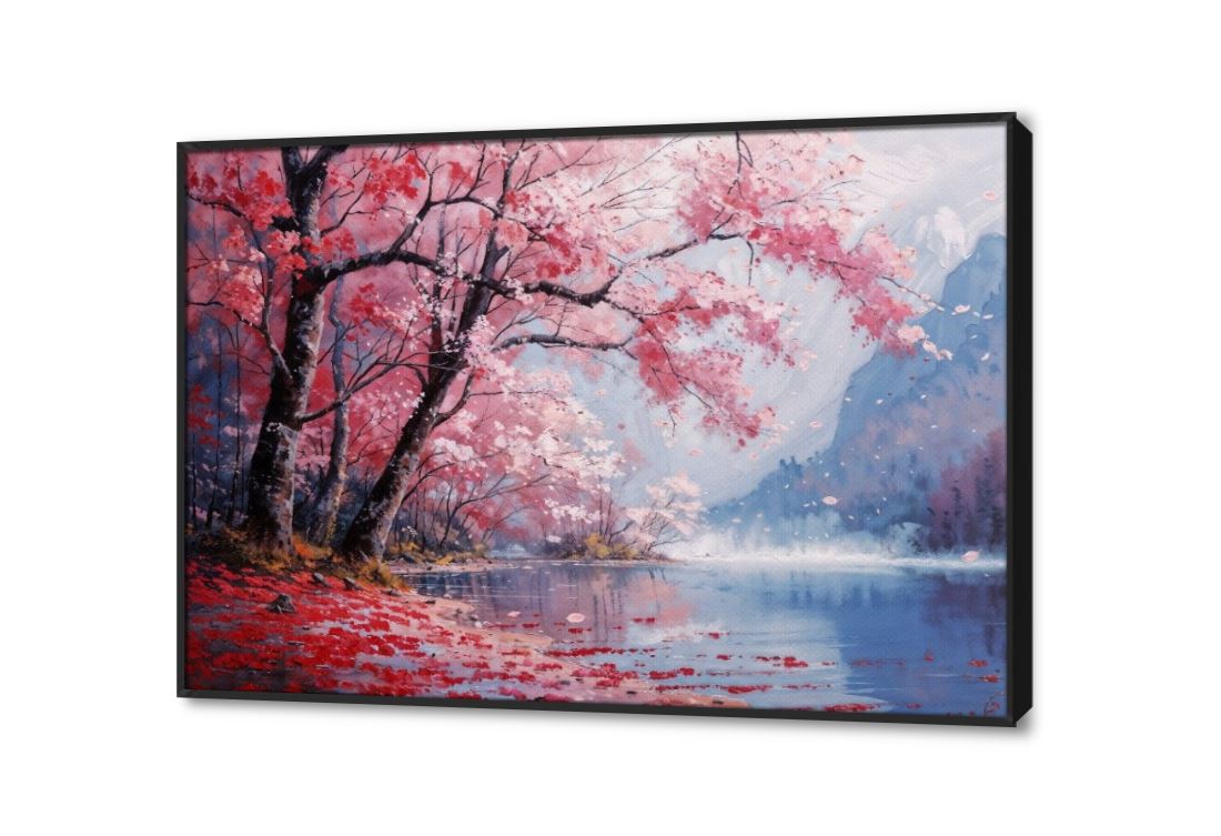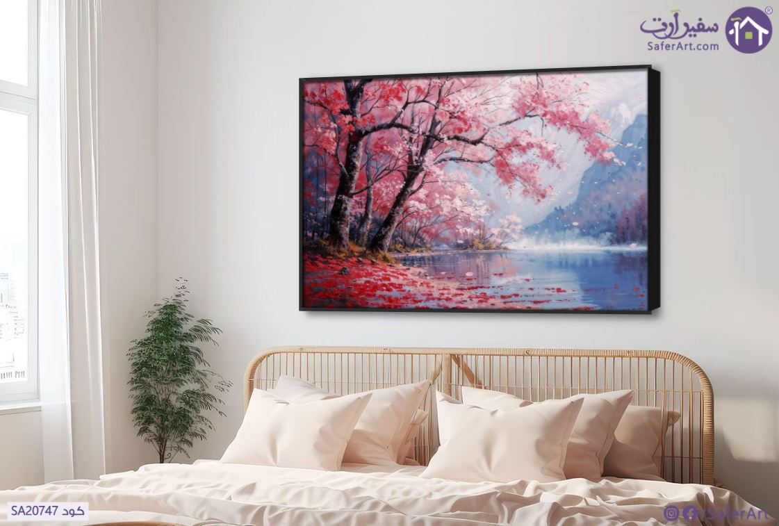 منظر طبيعى لاشجار ملونه بالوان جذابه باللون البينك ودرجاته تنمو على حافه البحرالملون بالللون الازرق حيث نظهر انعكاسات السحاب به, متوفر بمقاسات متعددة يمكنك اختيار او تغيير المقاس عند الطلب ,بتصميم مميز لـ تابلوهات مودرن, تابلوهات مودرن , لوحات فنية مودرن اشجار, مناظر طبيعية , التابلوه يغلب عليه الالوان ازرق - تركواز, بنى - بيج, بينك – فوشيا , و مصمم بالشكل التالى 1 قطعه , بالعرض, ببرواز, برواز اسود, مستطيل , مناسب لديكور حوائط غرفة المعيشة, غرفة النوم , و هو يتميز بالسمات التالية : الوان زيتية - اكريليك, لوحات فنية, مودرن , متوفر الان فى مصر و يأتى جاهز للتركيب مع دليل التركيب و اكسسوارات التركيب اللازمه