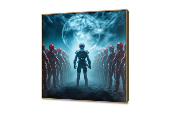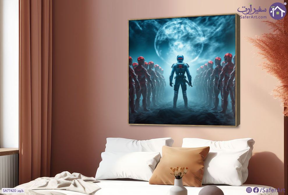 تابلوه مودرن بتصميم خيالى لجنود بملابس حديثه تشبه الروبوتات فى الفضاء, متوفر بمقاسات متعددة يمكنك اختيار او تغيير المقاس عند الطلب ,بتصميم مميز لـ تابلوهات مودرن, تابلوهات مودرن , لوحات فنية مودرن خيال - خيال علمى , التابلوه يغلب عليه الالوان ازرق - تركواز, احمر - نبيتى, الوان داكنة , و مصمم بالشكل التالى 1 قطعه , مربع, ببرواز, برواز خشبى , مناسب لديكور حوائط غرفة شباب , و هو يتميز بالسمات التالية : تماثل - سيميترى, ديجيتال آرت, مودرن , متوفر الان فى مصر و يأتى جاهز للتركيب مع دليل التركيب و اكسسوارات التركيب اللازمه