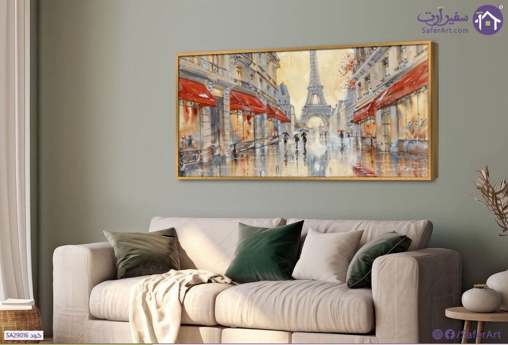 تابلوه مودرن رومانسي لرجل وامرأة يسيران تحت مظلة في إحدى شوارع مدينة باريس الممطرة ويظهر في الخلفية برج إيفيل في أجواء رومانسية., متوفر بمقاسات متعددة يمكنك اختيار او تغيير المقاس عند الطلب ,بتصميم مميز لـ تابلوهات مودرن, تابلوهات مودرن , لوحات فنية مودرن دول و مدن مشهورة, اماكن و مدن و مباني , التابلوه يغلب عليه الالوان احمر - نبيتى, رمادى , و مصمم بالشكل التالى 1 قطعه , بالعرض, ببرواز, برواز ذهبى, مستطيل , مناسب لديكور حوائط غرفة المعيشة, غرفة النوم , و هو يتميز بالسمات التالية : الوان مائية, كلاسيك – نيو كلاسيك, لوحات فنية , متوفر الان فى مصر و يأتى جاهز للتركيب مع دليل التركيب و اكسسوارات التركيب اللازمه