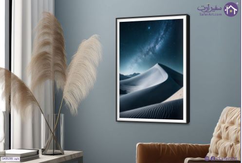 لوحات فنية تصور مشهد الكثبان الرملية الناعمة تحت سماء ليلية ساحرة تزينها مجرة درب التبانة والنجوم المتلألئة باسلوب فوتوغرافي يبرز جمال الطبيعة الخلاب وتدرجات الالوان الهادئة بين زرقة السماء وبياض الرمال مما يضيف لمسة من الصفاء والجمال لديكور منزلك., متوفر بمقاسات متعددة يمكنك اختيار او تغيير المقاس عند الطلب ,بتصميم مميز لـ تابلوهات مودرن, تابلوهات مودرن , لوحات فنية مودرن جبال, صحراء, فضاء و كواكب, مناظر طبيعية , التابلوه يغلب عليه الالوان ابيض - اوف وايت, ازرق - تركواز, اسود, الوان داكنة , و مصمم بالشكل التالى 1 قطعه , بالطول, ببرواز, برواز SF9, برواز اسود, مستطيل , مناسب لديكور حوائط غرفة الاستقبال, غرفة المعيشة, مدخل المنزل, مكاتب – شركات - اعمال , و هو يتميز بالسمات التالية : بسيط و هادئ, ديجيتال آرت, صور فوتوغرافية, مودرن , متوفر الان فى مصر و يأتى جاهز للتركيب مع دليل التركيب و اكسسوارات التركيب اللازمه